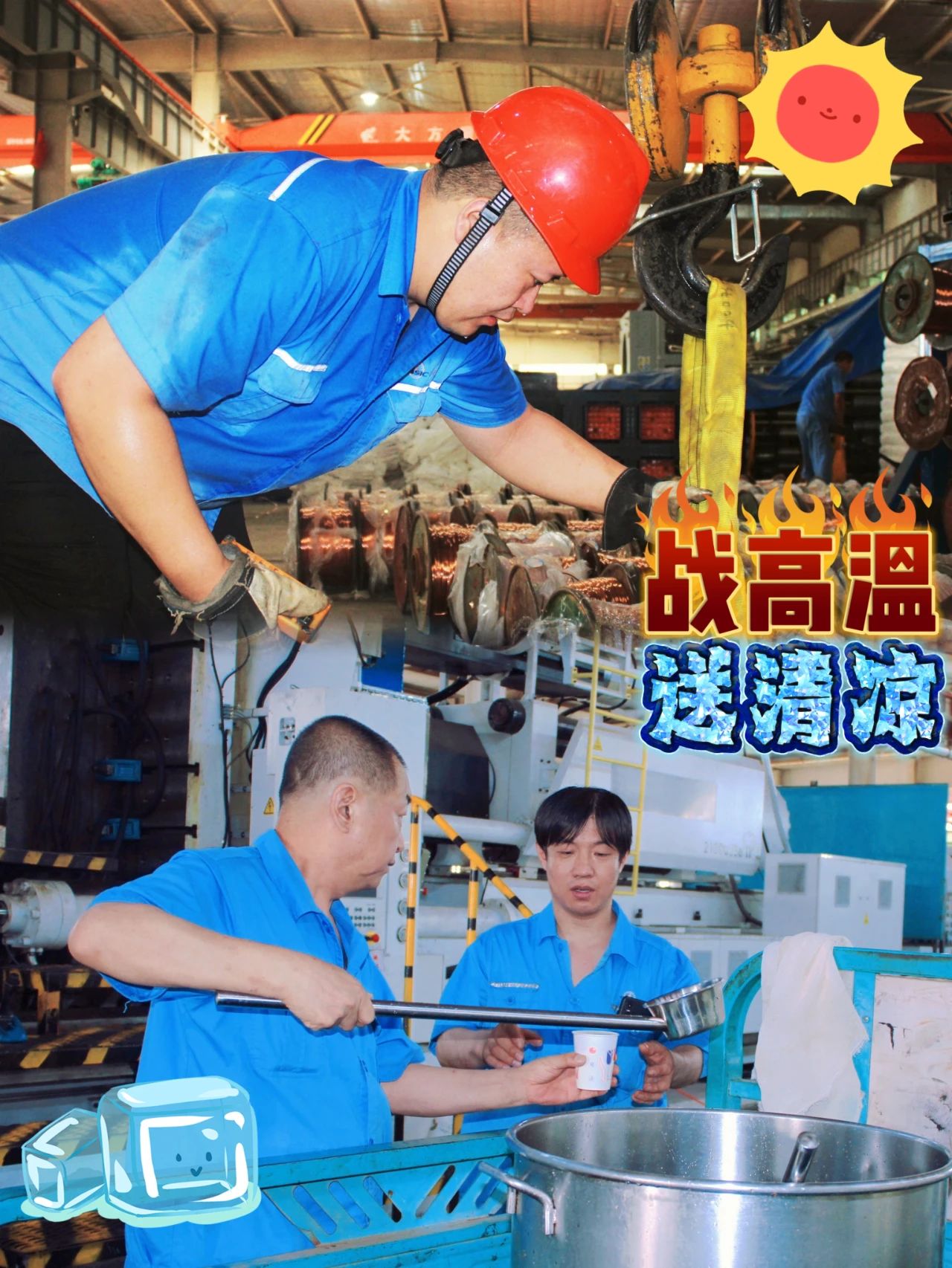 高溫下作業(yè)的科研生產(chǎn)一線干部職工始終牽動(dòng)著各級(jí)黨組織的心。7月23日,中國(guó)航天科工三院領(lǐng)導(dǎo)同院本部相關(guān)部門走進(jìn)159廠熱處理廠房、物資部下料車間,來(lái)到生產(chǎn)車間、操作臺(tái)前、職工中間,將解暑飲品送到高溫作業(yè)現(xiàn)場(chǎng),把清涼送到一線,也帶去院黨委的關(guān)心關(guān)懷。