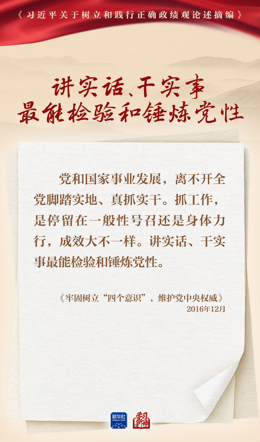 樹立和踐行正確政績觀學(xué)習(xí)教育正在全黨開展。真抓實干,是共產(chǎn)黨人的鮮明品格,也是成事之道。我們選取《習(xí)近平關(guān)于樹立和踐行正確政績觀論述摘編》一書中的相關(guān)重要論述,一起學(xué)習(xí)領(lǐng)會。