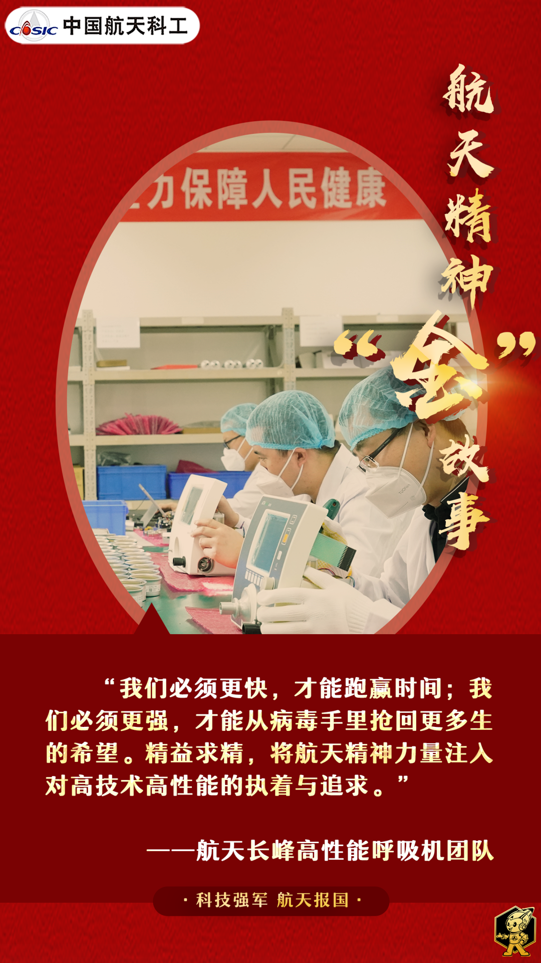 如今,航天長(zhǎng)峰相繼攻克了核心零部件、電路系統(tǒng)、軟件控制系統(tǒng)等全鏈條技術(shù)難關(guān),成功研制出了國(guó)際領(lǐng)先水平的高性能超高速高揚(yáng)程微渦輪風(fēng)機(jī),全面自主掌握了呼吸機(jī)核心技術(shù),為護(hù)佑人民健康貢獻(xiàn)了航天智慧。(海報(bào)/張藝馨 文/張章)