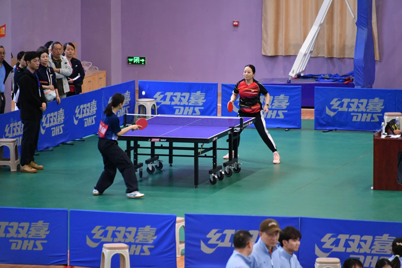 本次比賽分為男子團(tuán)體和女子團(tuán)體組,男子組共有17支代表隊(duì),女子組共有15支代表隊(duì),比賽采用團(tuán)體單打的形式進(jìn)行。球桌上,直拍橫拉、側(cè)旋擋球、上步搓球、側(cè)身進(jìn)攻、后退拉球、大力扣殺……選手們精湛的球技、奮勇拼搏的勁頭,讓比賽精彩紛呈;賽場(chǎng)外,熱烈的喝彩聲、整齊的加油聲,使整個(gè)活動(dòng)中心熱鬧非凡。
