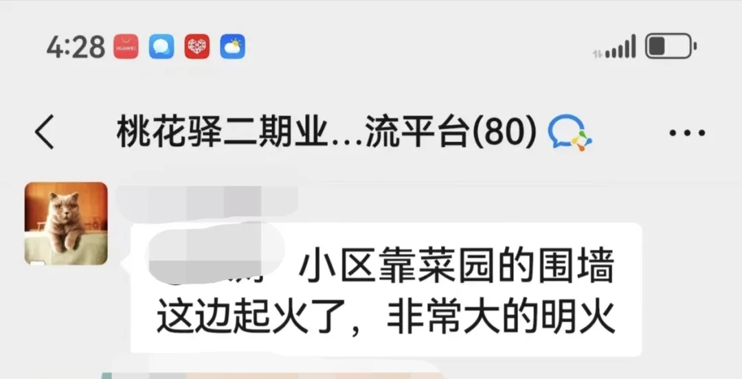 當(dāng)晚,剛剛吃過晚飯的鮑師傅正在休息,忽然看到業(yè)主群里有人發(fā)了一條消息——“小區(qū)靠菜園的圍墻這邊起火了”。